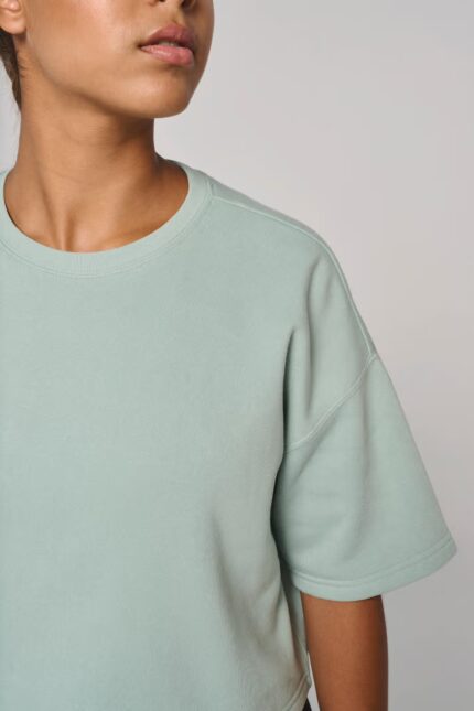 Sweatshirt «crop» de manga curta com decote redondo de senhora