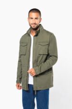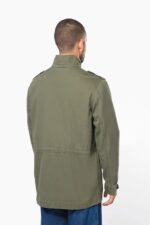 Fabricado com materiais resistentes e de alta qualidade, apresenta um corte direito e detalhes práticos como quatro bolsos frontais com pala, fecho frontal com botões, e gola estruturada. O design é pensado para proporcionar liberdade de movimentos, sem comprometer o estilo.