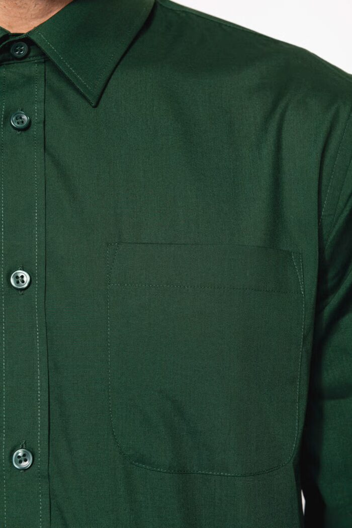 Confecção em polialgodão para um tratamento fácil. Resistência e estilo. Colarinho sem botões. Botões à cor. Bolso peito esquerdo com