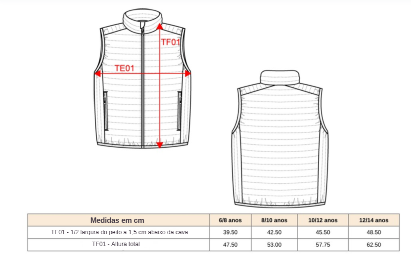 Colete acolchoado leve, quente e funcional, ideal para conforto em qualquer ocasião e liberdade de movimentos.