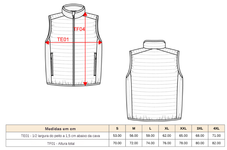 Tabela de tamanhos: