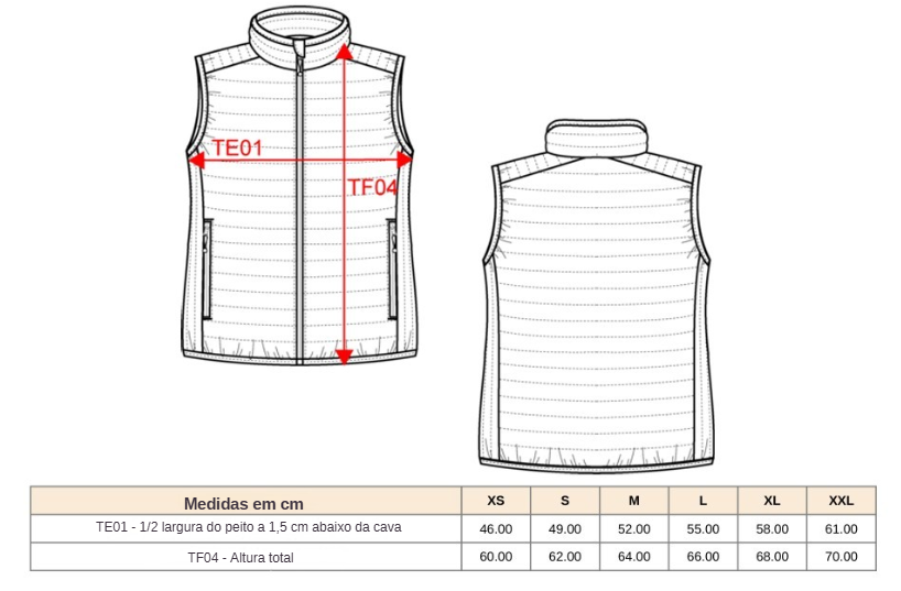 Colete acolchoado leve, quente e funcional, ideal para conforto em qualquer ocasião.