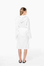 Confortável, absorvente e amigo do ambiente, este roupão com capuz é confeccionado em algodão biológico, proporcionando suavidade natural à sua pele. Ideal para relaxar após o banho.